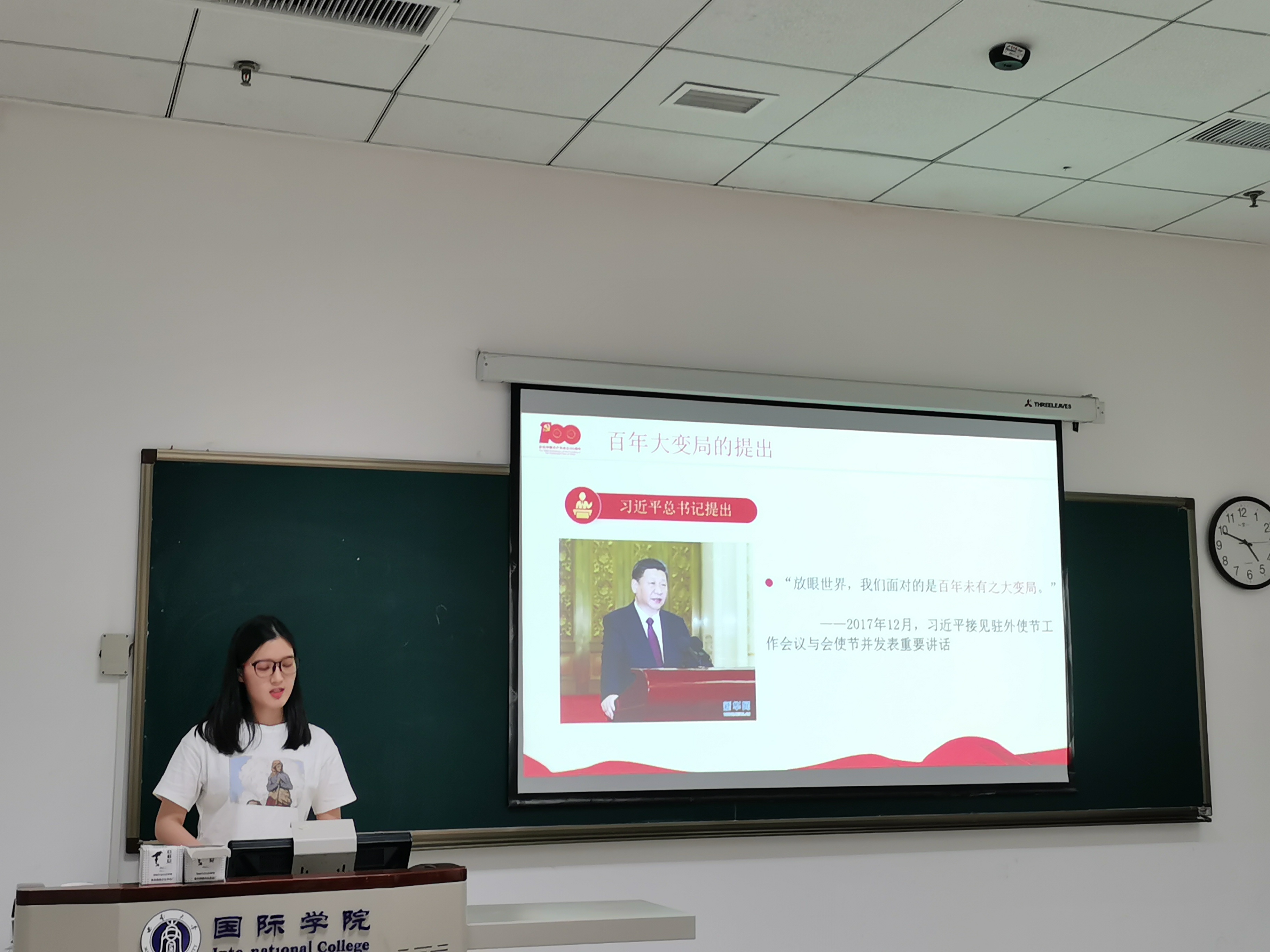 2021年6月3日下午四点,国际学院研究生第三党支部的6名党员以主讲人的方式开展党史宣讲,主题是:认真开展党史学习教育,准确把握‘百年未有之大变局’”。党总支书记刘猛主持宣讲会,2020级汉语国际教育硕士班的全体同学参加活动。