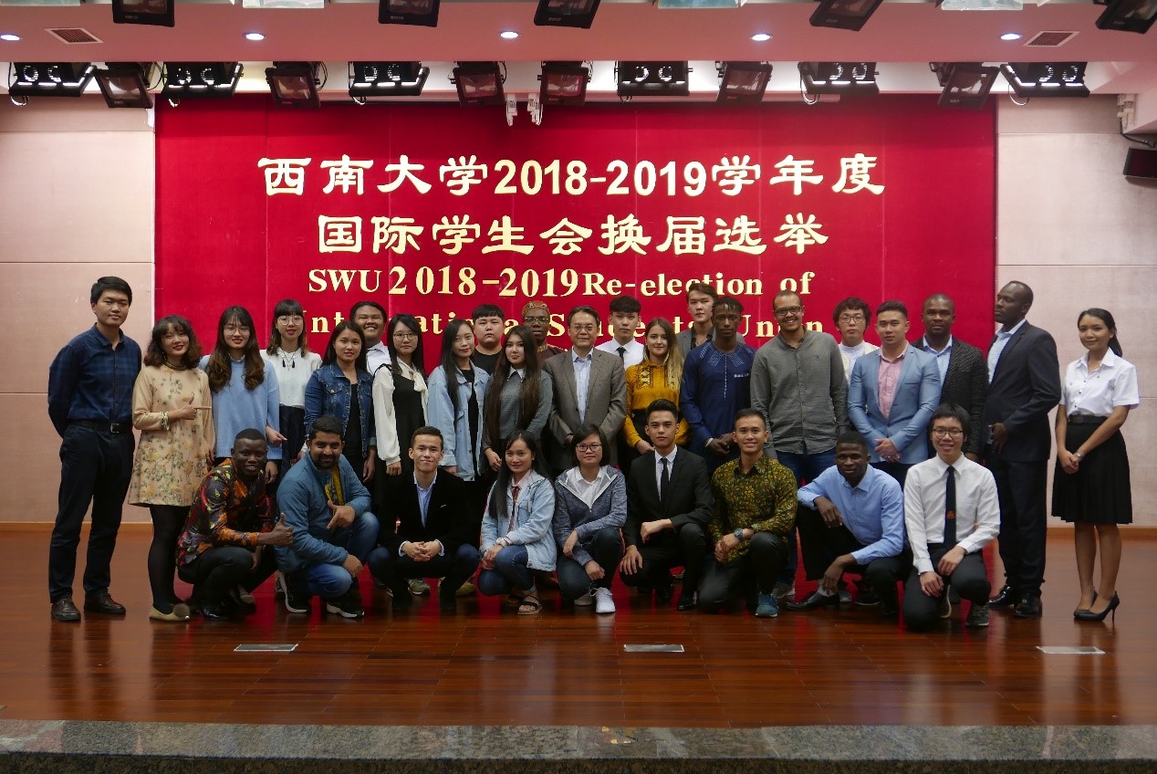 10月9日下午5点,西南大学2018-2019年度国际学生会换届选举大会在国际学院报告厅隆重举行,来自17个国家的30名候选人就新一届国际学生会的主席、副主席和秘书职位展开竞选。国际学院党总支书记刘猛,学生工作办公室主任陈雨曦以及全校400余名国际学生代表参加选举大会。