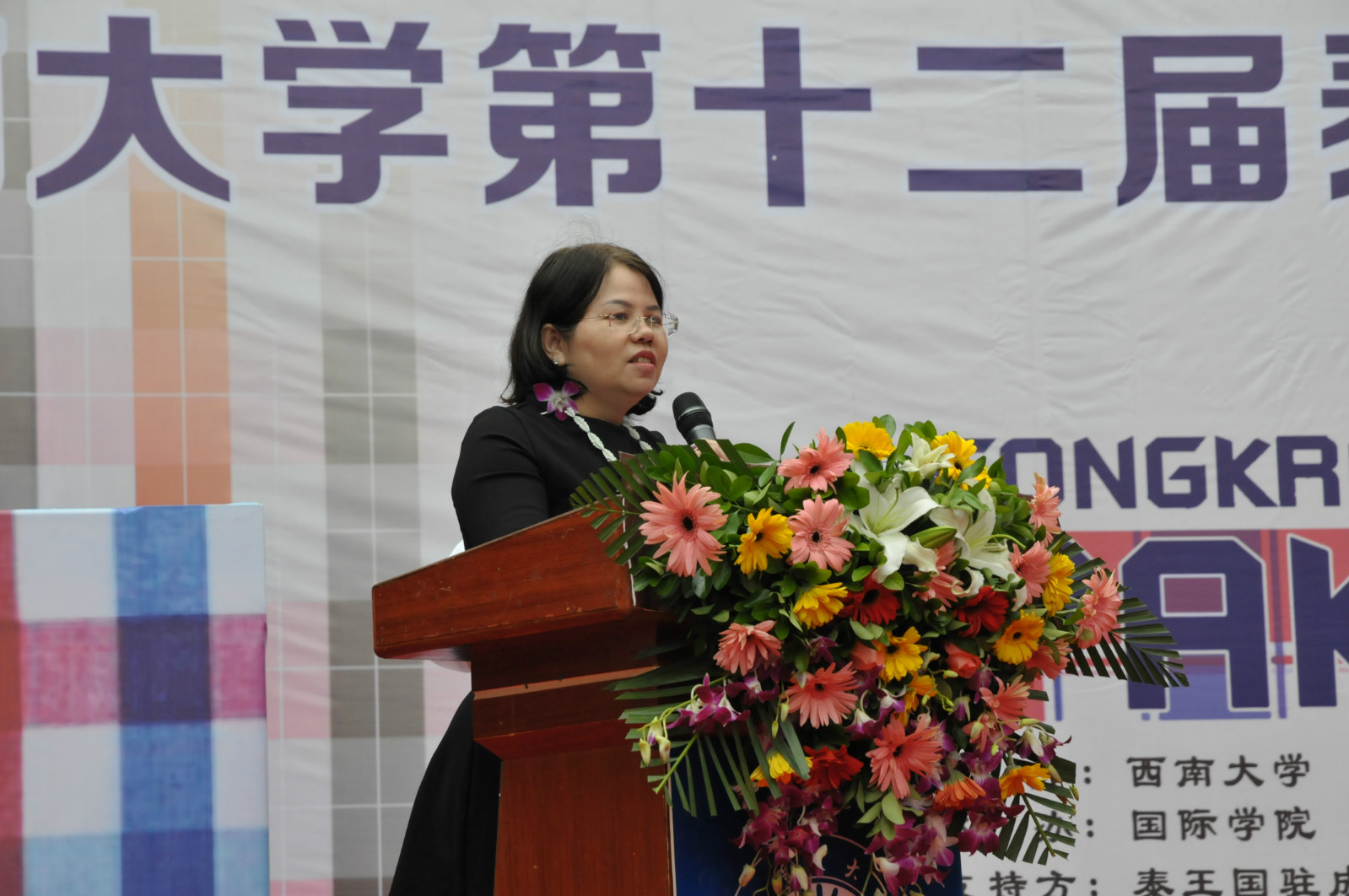 校长助理王进军教授在致辞中代表学校向出席活动的各位领导和来宾表示欢迎。他谈到学校举办宋干节的初衷,不仅是为了给来自五湖四海的同学们呈现一个泰式风情新年,更是为了给所有在校的泰国同学留下一份美好的回忆,传达学校对他们的无限关爱和祝福,希望泰国同学在泰历新年努力奋斗,为中泰文化交流做出贡献。