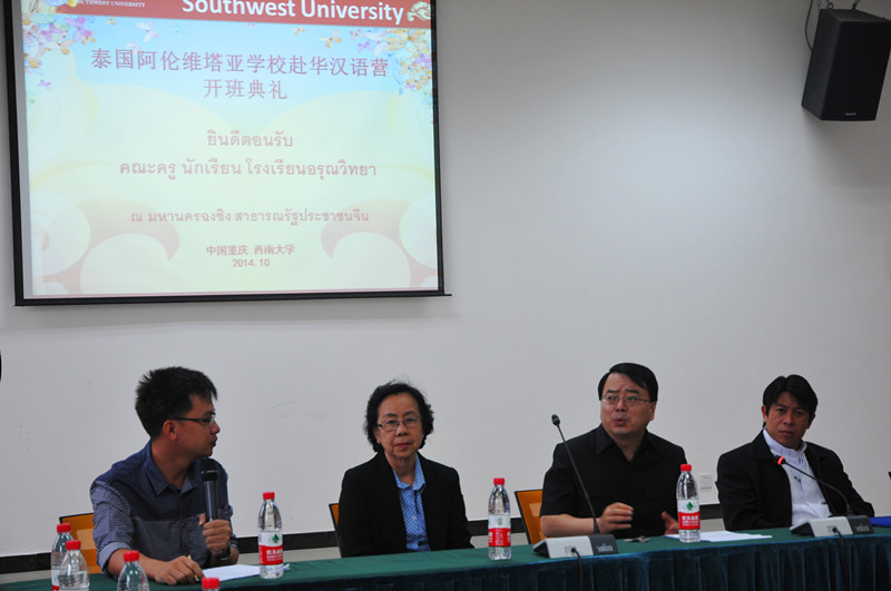PAITOON YANNGAM校长致感谢辞,他表示ARUNVITHAYA和NIRAMON两所学校一向都很重视汉语教学,此次学生们来到历史悠久、环境优美的西南大学,一定会学有所得、满载而归,并表达了对西南大学和国际学院的美好祝愿。