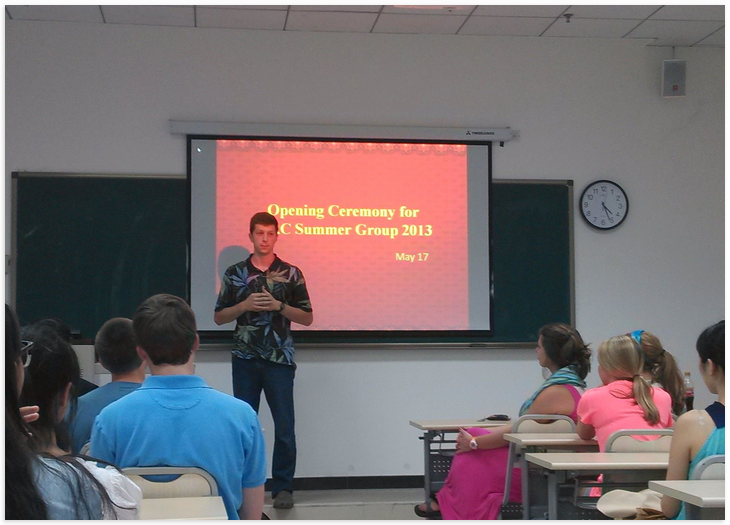 5月17日下午4:00,西南大学国际学院在紫云楼(国际学院综合办公楼)312教室举行了简朴、隆重、热烈的IPRC(International Professional Resources for China)开班典礼。国际学院副院长张家政、教师代表范媛媛、姜有顺、IPRC项目带队老师以及全体学生参加了开班典礼。