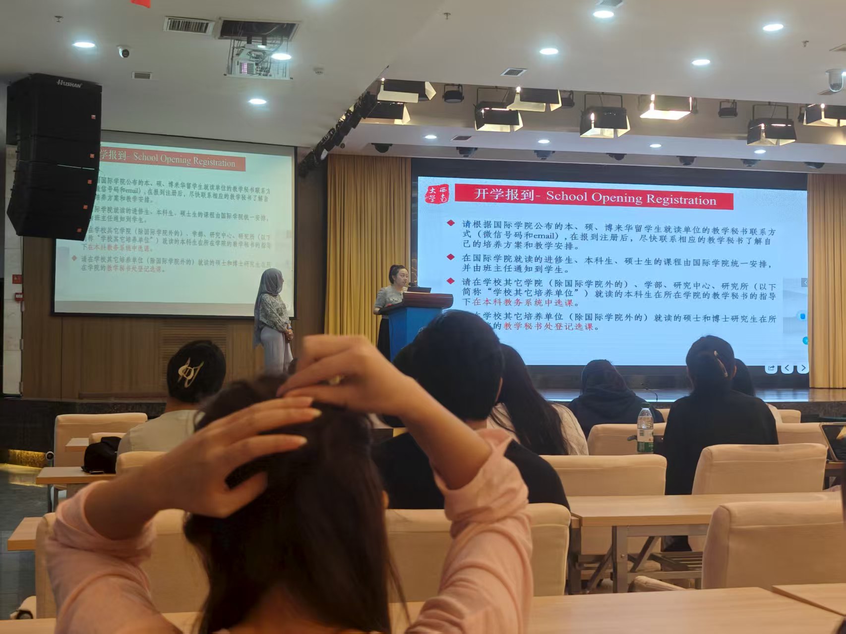 9月12日上午10点30分,学校2025级国际学生教学管理政策解读会在国际学院报告厅顺利召开,共有300多名新生到场参与。会上,国际学院教学办公室的刘燕妮老师围绕国际学生的培养流程、学籍变动管理、毕业要求及学位授予等相关规定,进行了全面细致的讲解,并耐心回应了新生们提出的各类疑问。最后,她寄语新生,希望同学们能够珍惜在华学习时光,扎实掌握汉语与专业知识,将这段宝贵的学习经历转化为自身成长的养分。学成之后,积极向家乡的亲朋好友乃至世界各地的人们分享所学所得,成为中华文化在全球传播的积极推动者。