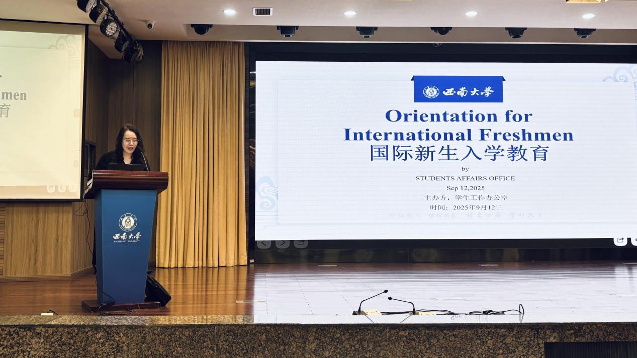 为帮助来华留学新生快速融入校园环境、精准掌握管理规定,9月12日上午9:00,国际学院在紫云楼学术报告厅开展2025级国际新生入学教育宣讲会。作为学院每年面向国际新生的常态化育人核心举措,本次活动由国际学院学生工作办公室主办,办公室主任杨凌霄及三名辅导员围绕新生在校学习、生活的关键领域开展系统性指导,全面彰显入学教育“内容全覆盖、流程标准化、服务制度化”的特色,为国际新生开启校园生活筑牢基础。
