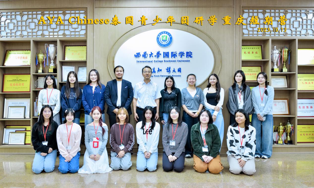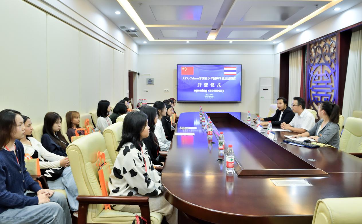 2025年10月13日上午,2025年AYA Chinese短期汉语营开营仪式在国际学院签约室举行。国际学院党委书记张袁松、AYA Chinese代表BENJAWAN PUMAS及14名泰国学员参加开营仪式,仪式由满夏露主持。