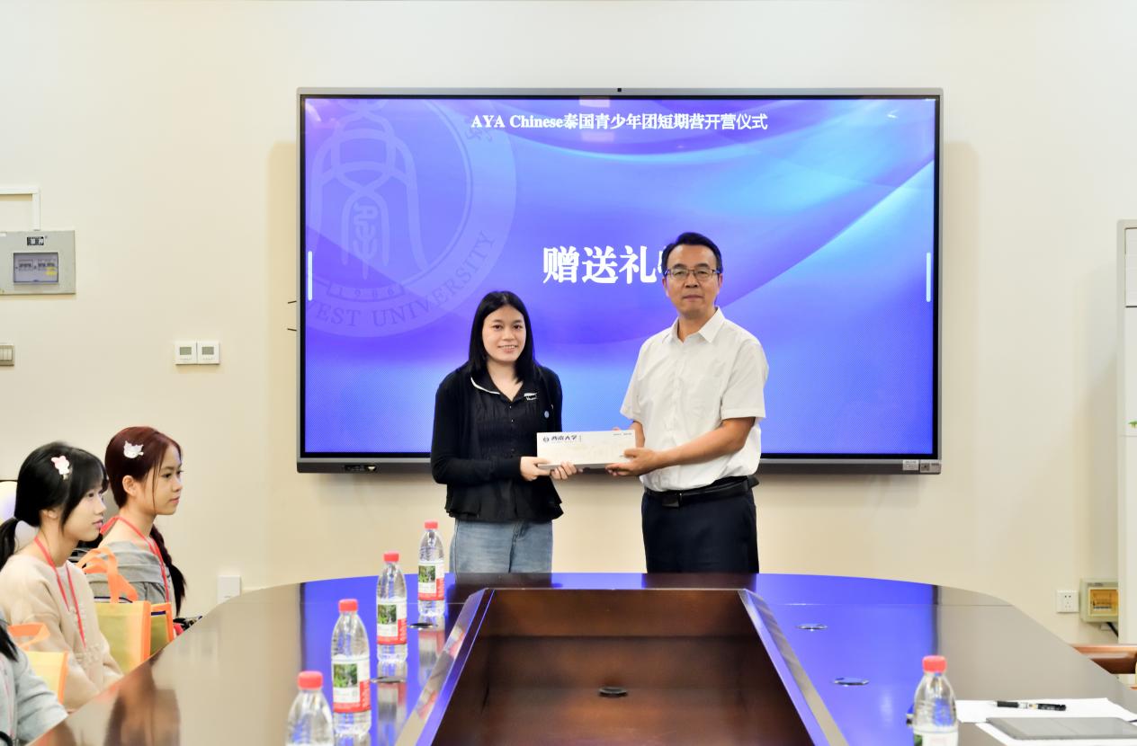 致辞后,张袁松书记代表学院向AYA Chinese短期团赠送纪念礼物,传递友好情谊,现场掌声热烈。
