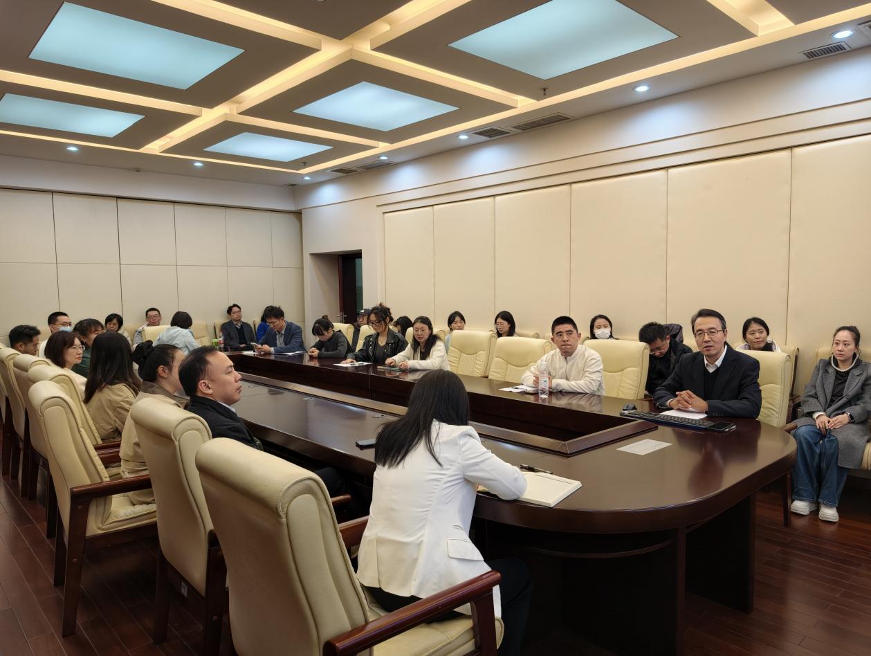 2025 年 11 月 7 日下午,国际学院在签约室召开 2025 年第十次教职工政治理论学习会,专题学习《党的二十届四中全会精神宣讲提纲》。学院党委书记张袁松主持并导学,全体教职工参会。