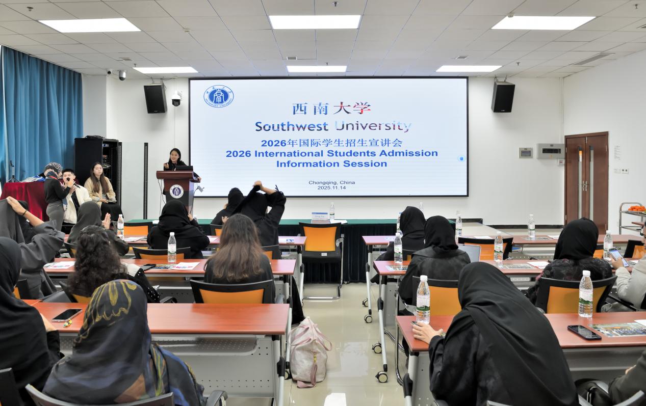 仪式开始前特别增设西南大学国际学生招生宣讲环节,西南大学外国学生招生办团队结合本次特训营主题,围绕学校优势学科、专项奖学金政策及申请流程展开细致讲解,让沙特学员直观感受到西南大学的学术底蕴与国际化育人氛围,为两校后续常态化人才交流奠定良好基础。