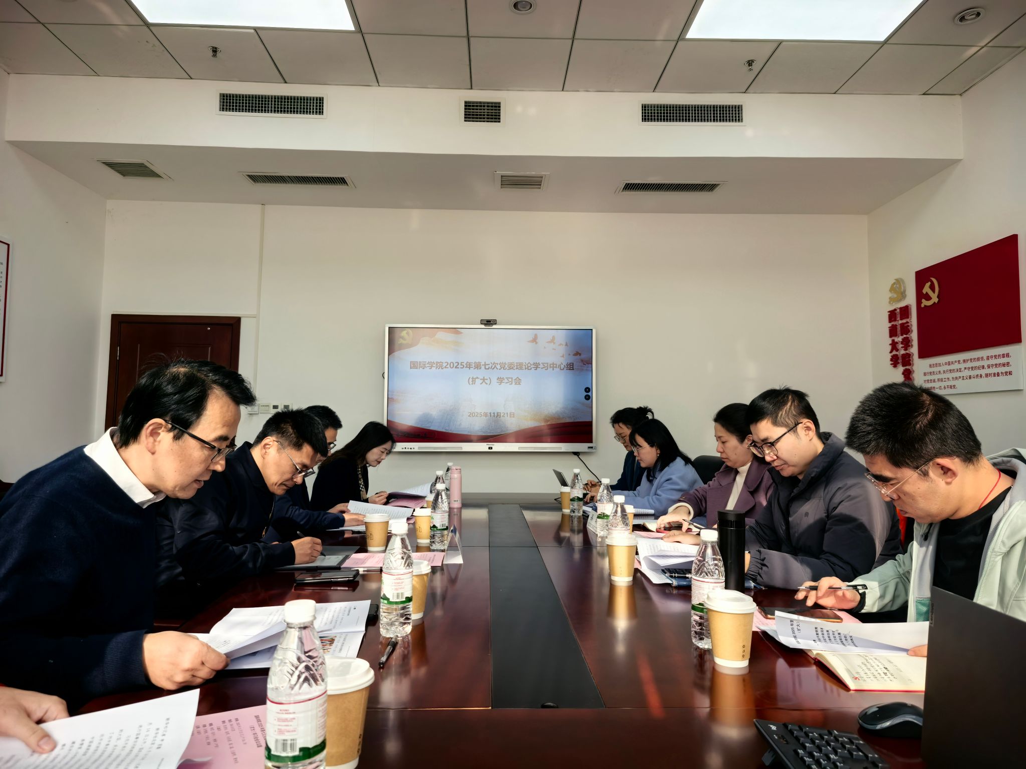 2025年11月21日上午10:30,学院在304会议室召开党委理论学习中心组2025年第7次集体学习(扩大)会,学校党委常委、党委宣传部部长、党委网络工作部部长、发展规划与学科建设部部长、学术委员会办公室主任孙楚航列席指导,学院党委书记张袁松主持学习会并领学,学院全体领导班子成员、党支部书记参加学习。