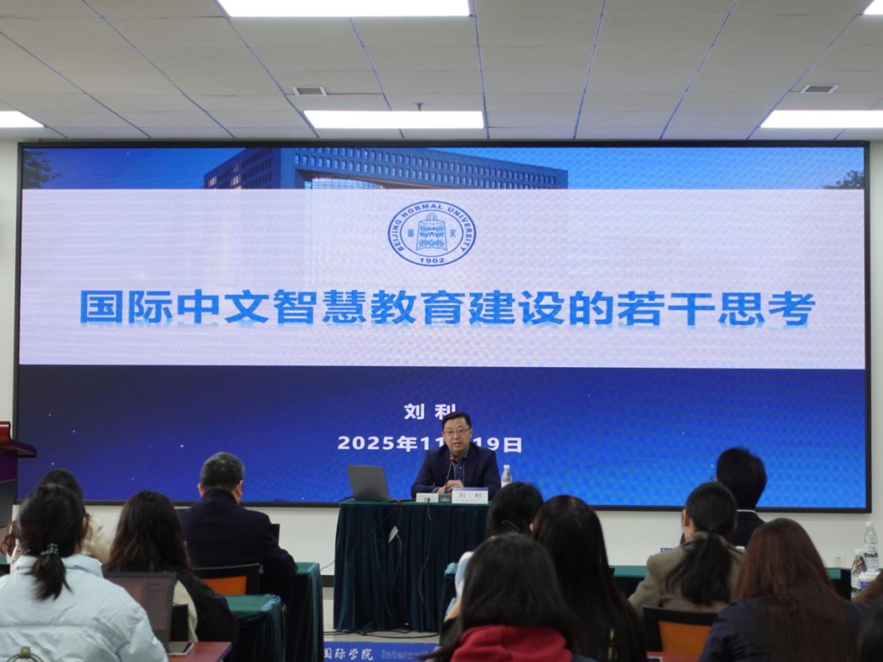 11月19日,学院邀请北京师范大学教授刘利开展题为“国际中文智慧教育建设的若干思考”的专题讲座。刘利教授长期关注语言教育与技术融合领域,在讲座中系统剖析了智慧教育在国际中文传播中的定位、路径与挑战。他指出,教育数字化不仅是工具升级,更是教学范式与教育生态的重构,应坚持以学习者为中心、以数据为驱动,推动中文教学从“标准化”向“个性化”转型。刘利教授结合国内外典型案例,阐述了智慧教学平台构建、资源智能推送、人机协同评价等关键环节的实现方式,并强调“技术赋能”必须与“教师发展”“教学理论创新”协同推进。在互动环节,他针对师生提出的技术应用门槛、跨文化适配及伦理规范等问题给予细致回应,鼓励通过跨学科合作、产学研联动共建可持续的中文智慧教育生态。