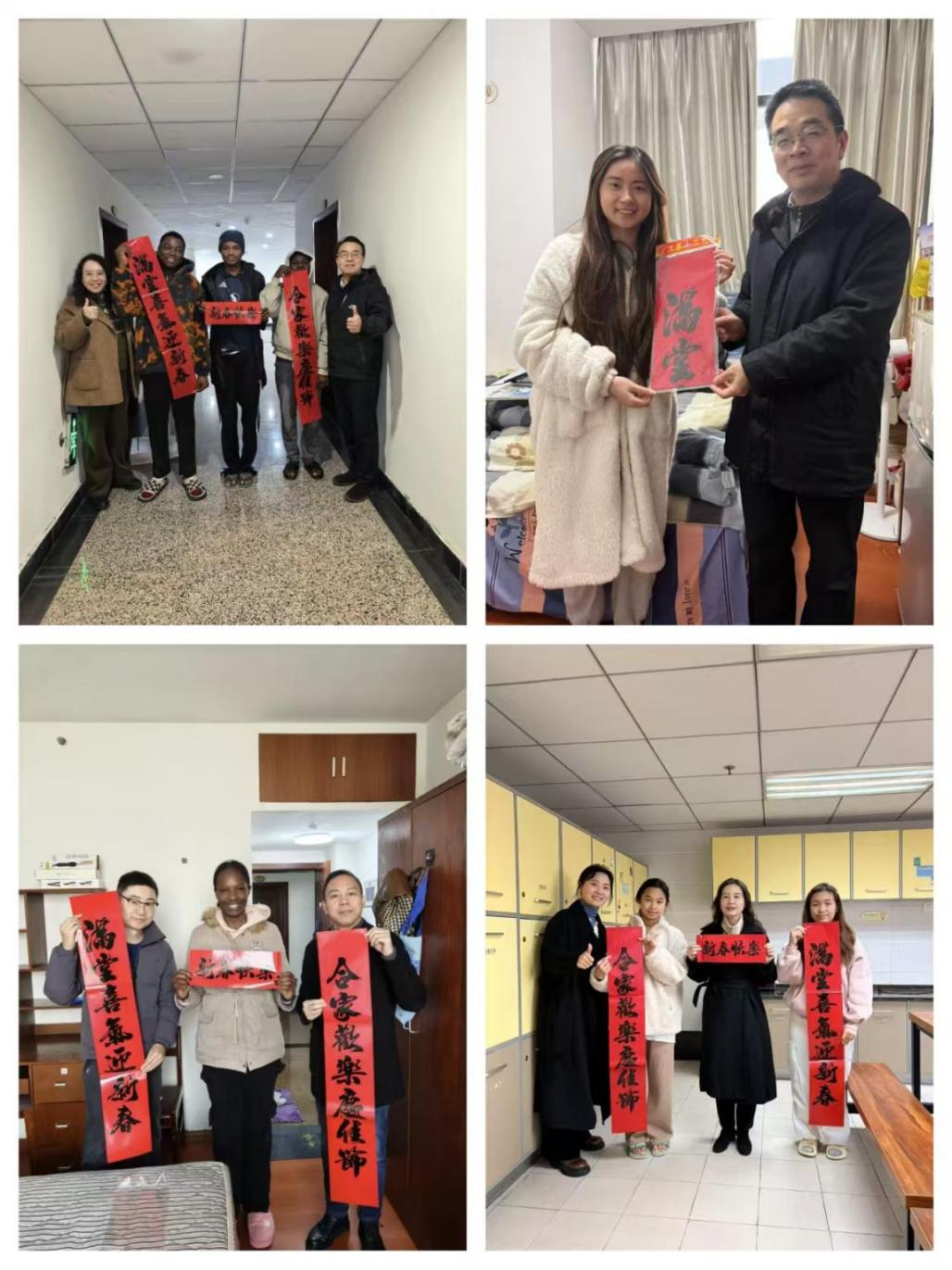 学院领导为留学生赠送具有年俗韵味的对联,传递中方师生情谊,帮助他们了解春节文化、融入节日氛围。