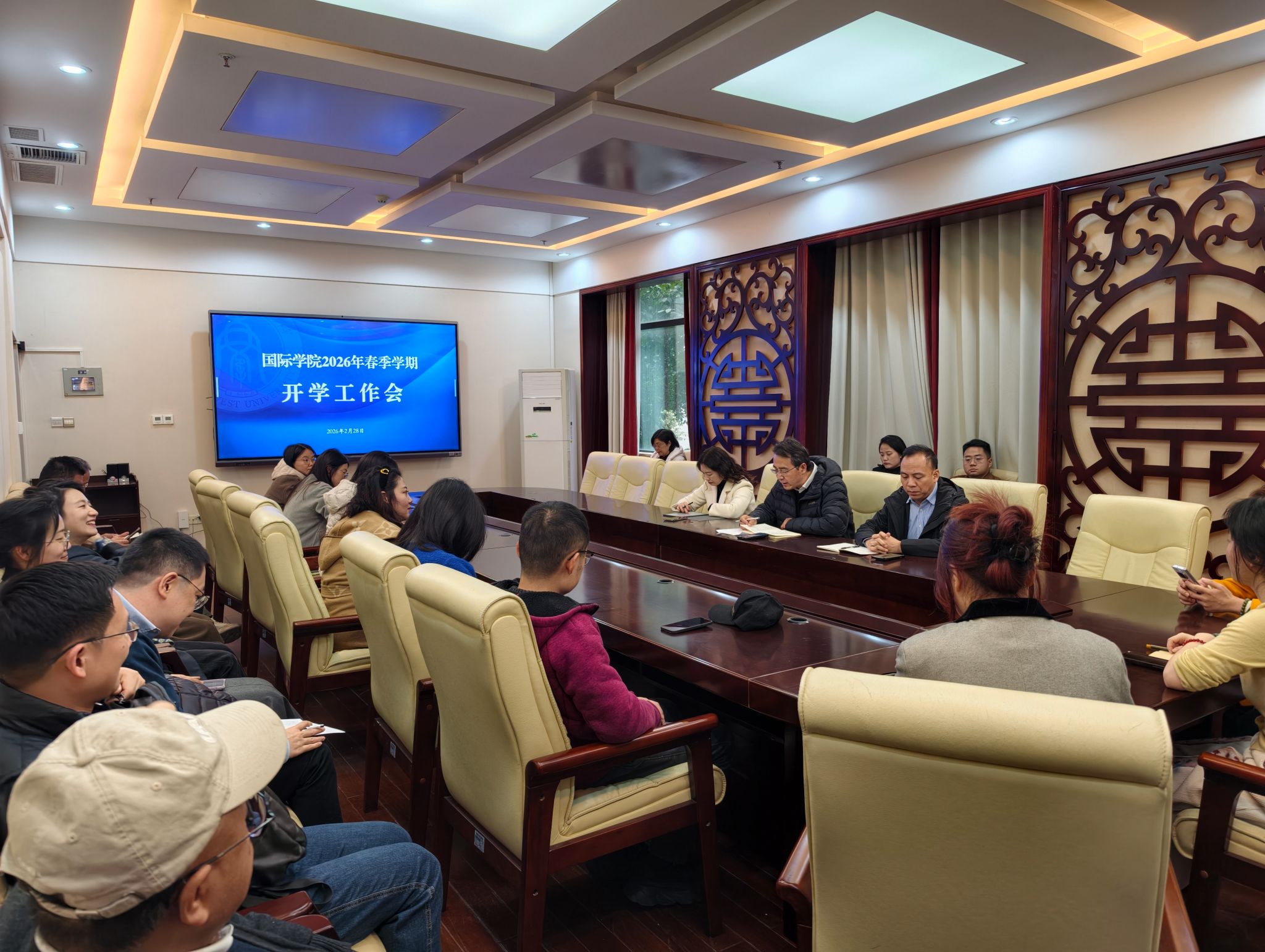 2026年2月28日14:30,国际学院在紫云楼签约室召开2026年春季学期开学工作会议。会议由张袁松书记主持,全体教职工参会。