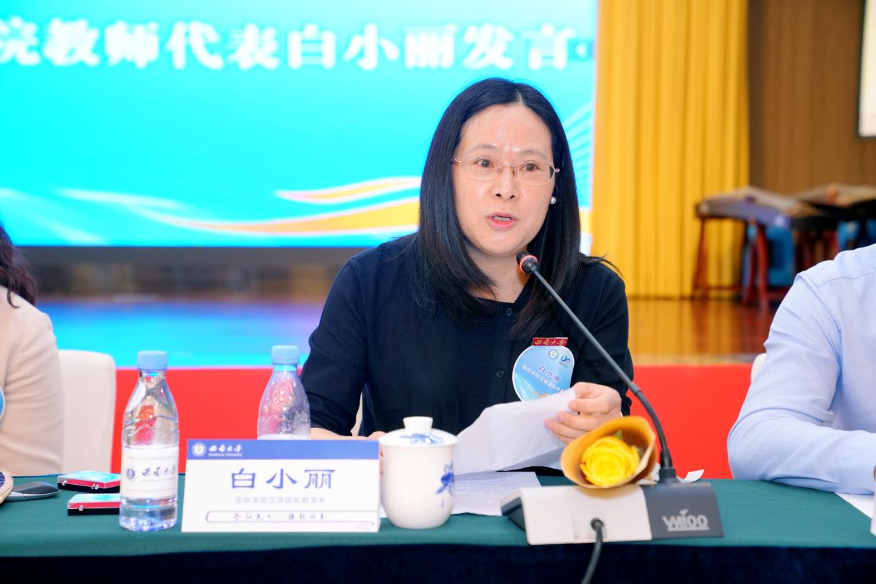2026年4月18日,西南大学国际学生校友捐赠仪式暨座谈会顺利举行。副校长赵玉芳、外联办副主任/学校教育基金会副秘书长陈建英、国际学院党委书记张袁松、副院长胡琳出席会议。国际学院党委副书记耿军主持。