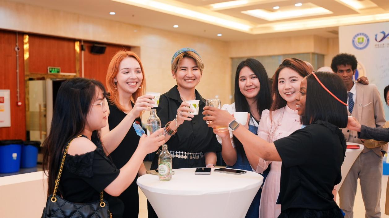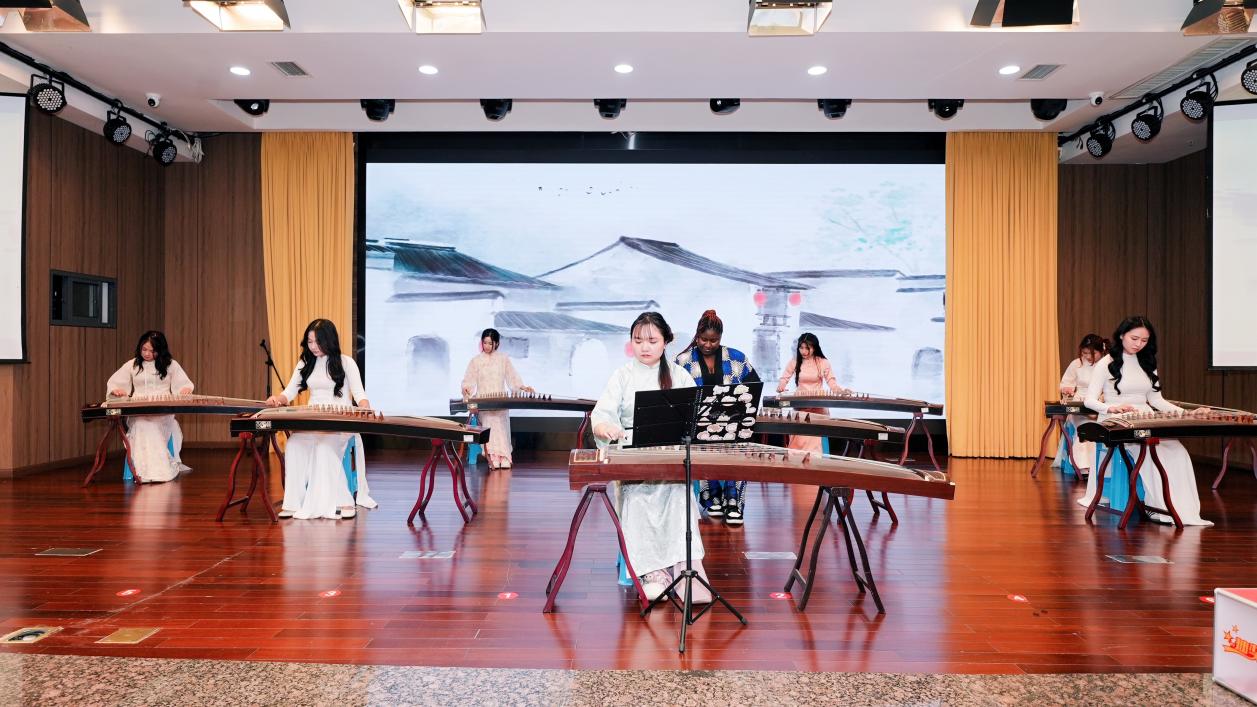 学院四海古筝队、越南学生、泰国学生带来的《玉盘》《茉莉花》《读中国》《江湖之间》等演奏和歌唱节目立意高远,表达了对跨越山海、远道而归校友们的热烈欢迎。泰国校友代表罗俊勇、纳兰容带来的流行歌曲《我的好兄弟》唱出了同窗情谊、肝胆相照和奋发有为的豪迈气概。