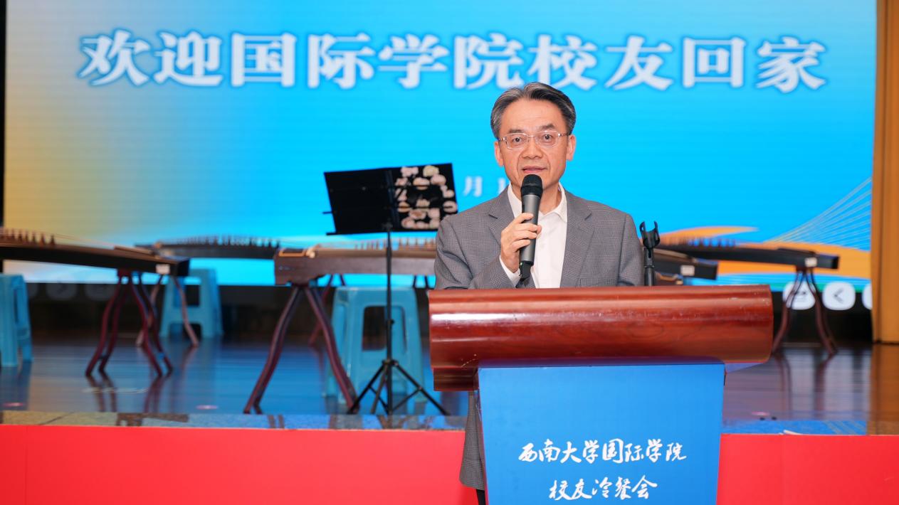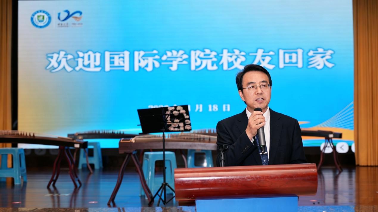 原学院党委书记刘猛在讲话中深情回顾学院的建设发展、国际教育取得的丰硕成就,表示看到国际学生、中国学生校友成绩斐然,倍感欣慰。