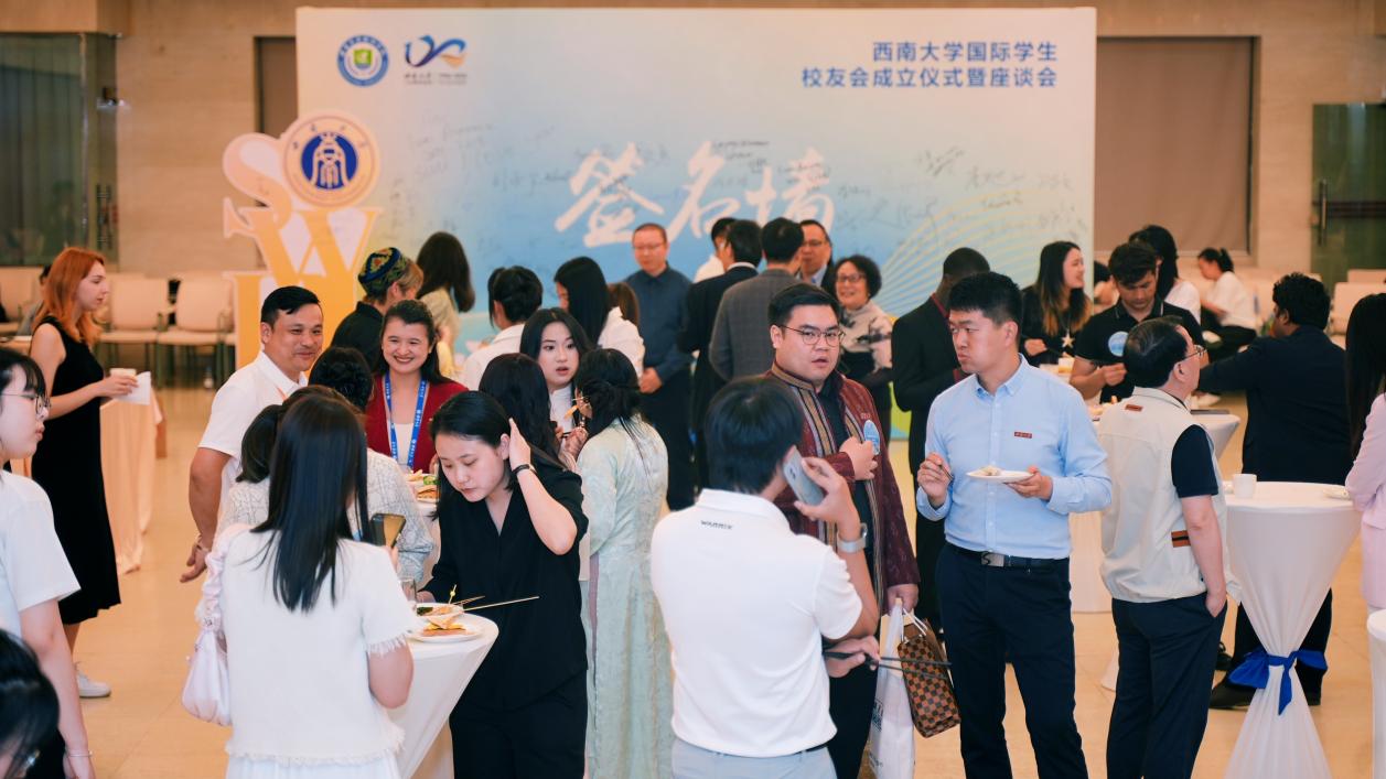2026年4月18日晚,国际学院校友冷餐会在报告厅举行。国际学院历任、现任领导,国际学院教师代表,国际学生、中国学生校友代表,在校生代表等一百余人出席会议,党委书记张袁松主持。