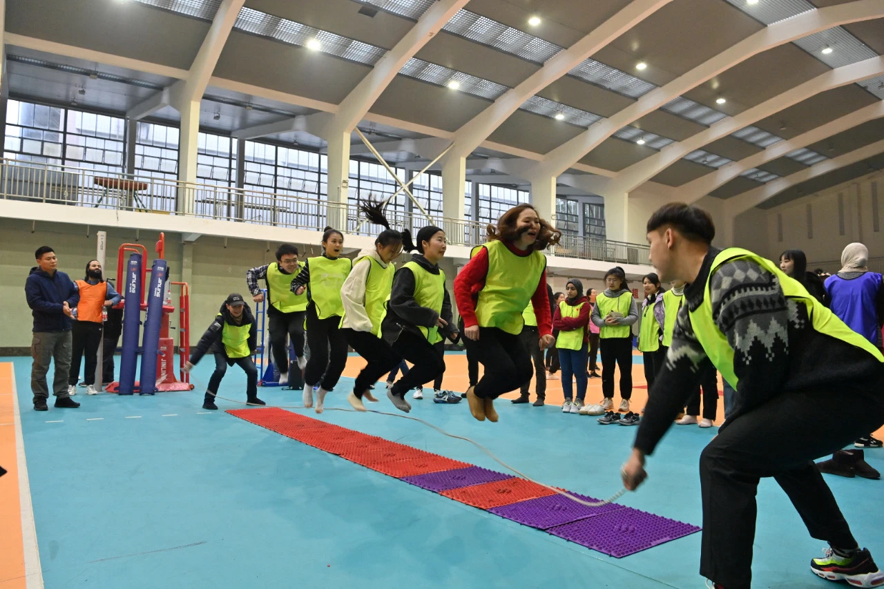 虽已是寒风瑟瑟的十二月了,可校排球馆内却是热火朝天,呐喊声、欢笑声、助威声此起彼伏。原来是西南大学国际学院在举行一年一度的师生趣味运动会!趣味运动会作为第十四届国际文化节的分项目之一,旨在促进中外学生身心健康,展示学生们的蓬勃朝气和竞技热情,更希望通过线上+线下的模式为境外留学生提供互动交流和文化展示的平台。