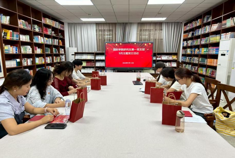9 月 12 日下午 3 时,国际学院研究生第二党支部在紫云楼 316 会议室举行 2025 年 9 月主题党日学习活动,9 名党员悉数参会。活动由王湛明主持,程翠莲、屈漫担任领学人。