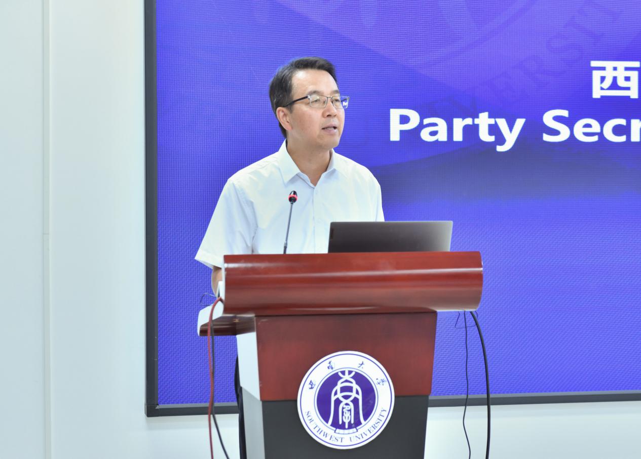 国际学院张袁松书记登台致辞,他诚挚欢迎汉语短期团学员的到来,并表示教育是促进中外文明互鉴、搭建民心相通桥梁的重要载体。他进一步寄语学员:在后续学习中,既要感受汉语魅力、领悟中华文化,更要在互动交流中收获知识、缔结友谊,未来成为推动中外文明互鉴的 “民间使者”。
