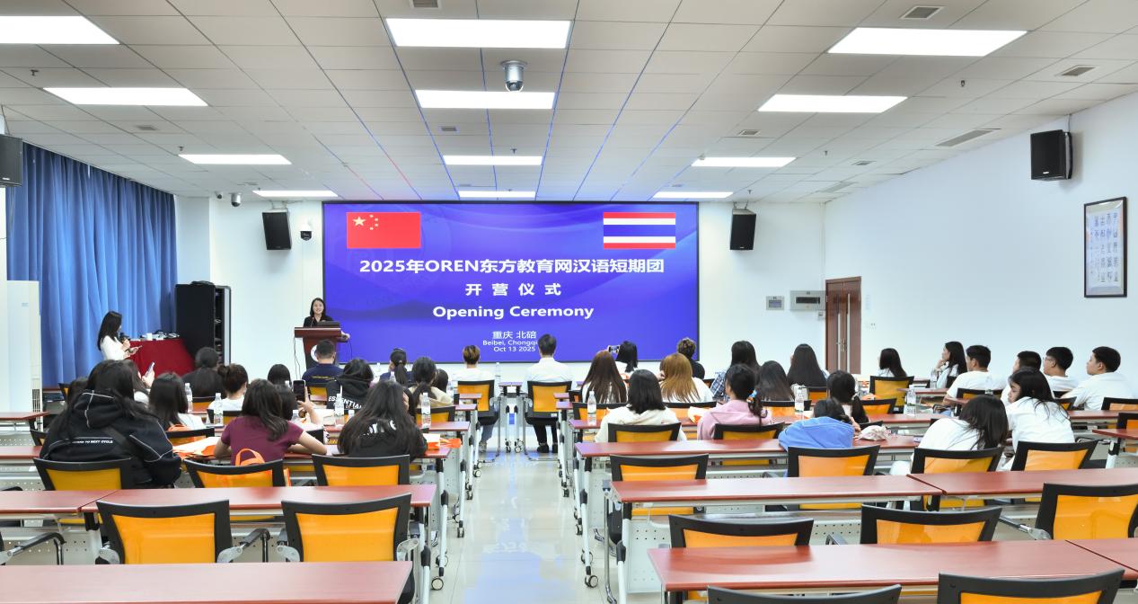 2025年10月13日下午,2025年OREN东方教育网汉语短期团开营仪式在西南大学国际学院紫云楼317室举行,国际学院党委书记张袁松、OREN东方教育网CHANAPORN PRUEKSAMAHALAP、KANJANA PHUAKKHWANNAK五位老师代表及32名泰国学员们参加开营仪式,仪式由刘嬛主持。