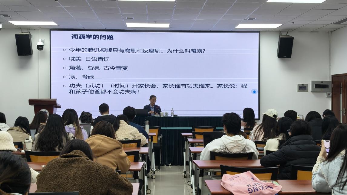 在讲座中,崔教授梳理了语言问题研究的多个理论维度,包括语言中的例据性、语言中的刻板印象、反预期表达、词源学问题等,并强调了认知视角在语言研究中的重要性。他以一系列妙趣横生的日常生活中的语言现象为例,进行了深入浅出地剖析,使在场师生对语言研究的理论与方法有了更清晰的认识。
